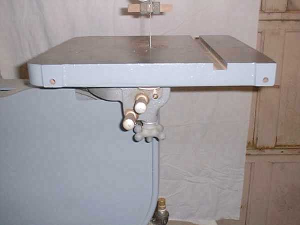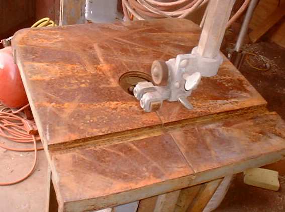 And I had also bought a second incomplete (1950 model) from new friend Glenn. So far I have not cleaned up the table that came with mine; I just mounted the Glennsaw table & bracket assembly for use while I decide what to do with the really rusty one which I intend to save & use if possible just to keep it as original as possible. Original table: